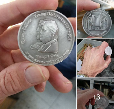 Vào ngày 28/02/2018 vừa qua, tổ chức Đền Thờ (Temple Institue) của Israel đã đúc đồng xu có hình của tổng thống Donald Trump và vua Cyrus của Ba Tư. Vua Cyrus trị vì 2500 năm trước, đã cho phép người Do Thái trở về lại Jerusalem sau khi họ bị lưu đày sang Babylon. Họ đúc đồng xu này để tỏ lòng biết ơn vì ông Trump đã công nhận Jerusalem là thủ đô của Israel trong tháng 12/2017. Tại sao người Do Thái lại ví ông như vua Cyrus?